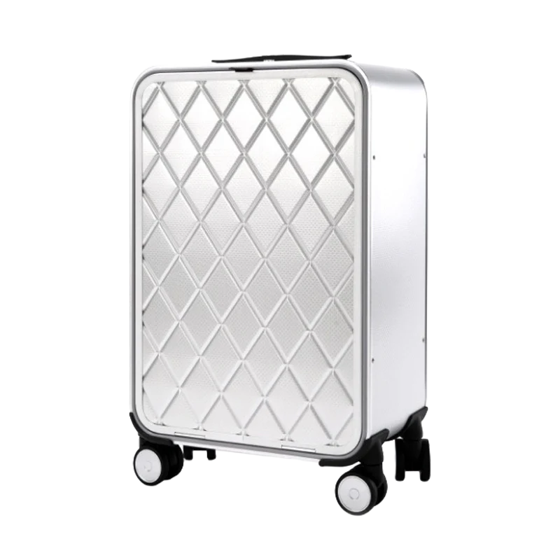 アルミニウムボディに、精密なダイヤモンドパターンを施したフラッグシップモデルです。直線と面が織りなす幾何学的な意匠は、過剰な主張を抑えつつも、持ち主のプロフェッショナルな品格を静かに語ります。機能面では、耐荷重約100kgを誇る強靭な設計に加え、移動中でもPCを即座に取り出せるフロントオープン構造を採用。カラーはブラックやシルバーなど、重厚感のあるパレットを展開しており、重要なビジネスシーンにおいて信頼感を演出します。