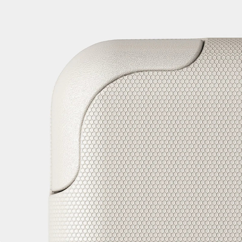 軽量性と耐衝撃性を両立した高品質ポリカーボネートに、繊細な垂直リブラインを刻んだプレミアムモデルです。視線を引き締める端正なシルエットが、佇まいに心地よい緊張感を与え、洗練された印象を周囲に与えます。サイドにはUSB充電ポートとTSAロックを標準装備し、空港や移動中のデバイス管理をスマートに完結させます。ブラック、ダークグレー、トープといった深みのあるカラー展開は、機能美を追求するプロフェッショナルのための選択です。