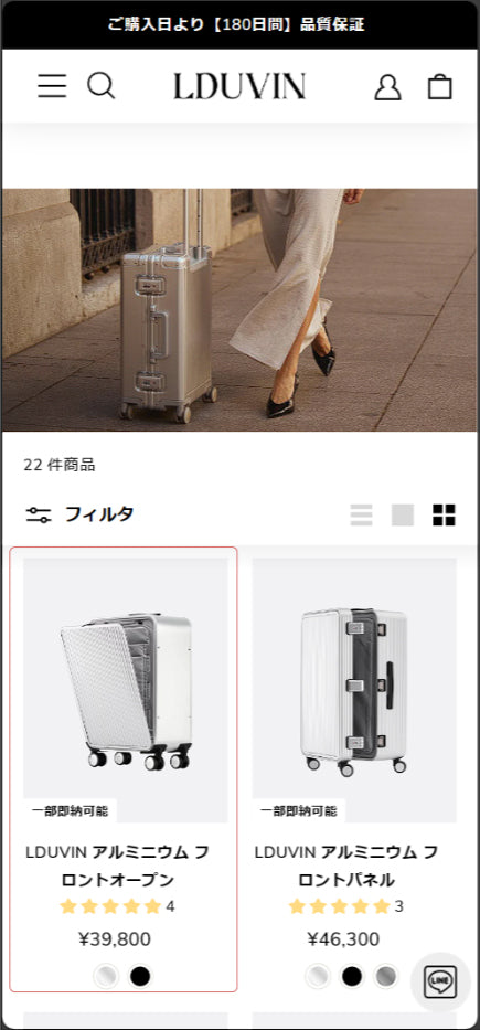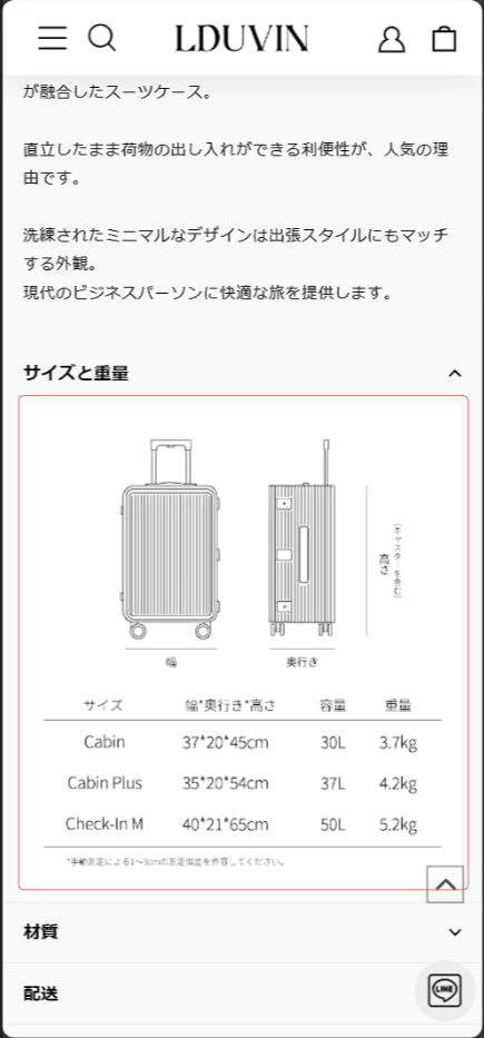 「こちらのSize Chartは、LDUVINの各製品のサイズ・容量に基づいて作成された総合ガイドです。」